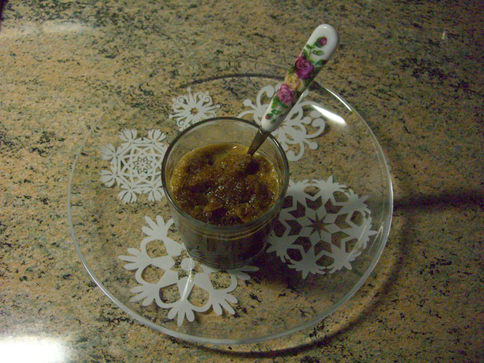 1, Készítettem egy bögre jó erős feketekávét, enyhén megédesítettem. (én tettem bele egy ek. rumot is, gyerekek nem voltak a vendégek között!!)