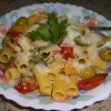 2, Közben hagyományos módon kifőzőm a tésztát. Leszűröm és ráöntöm a besűrűsödött paradicsomszószt.