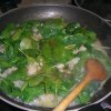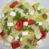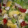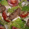 3, A tálban összekeverem az összevágott salátát és sült húst,